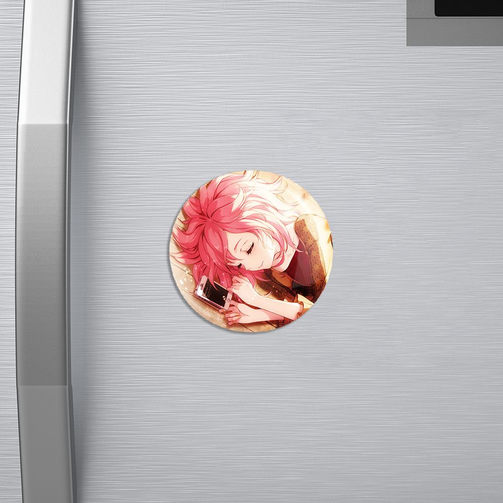 مگنت انیمه دختر خندالو با روکش سلفون مات مخملی ضدخش و قطعه پشتی فلزی تولید شده است که آهنربای اتمی بکار برده شده در محصول، بصورت مخفی تعبیه شده ودیده نمی شود. ضمن اینکه گیرایی بسیار بالایی داشته و به هیچ عنوان از روی یخچال نمی افتد.