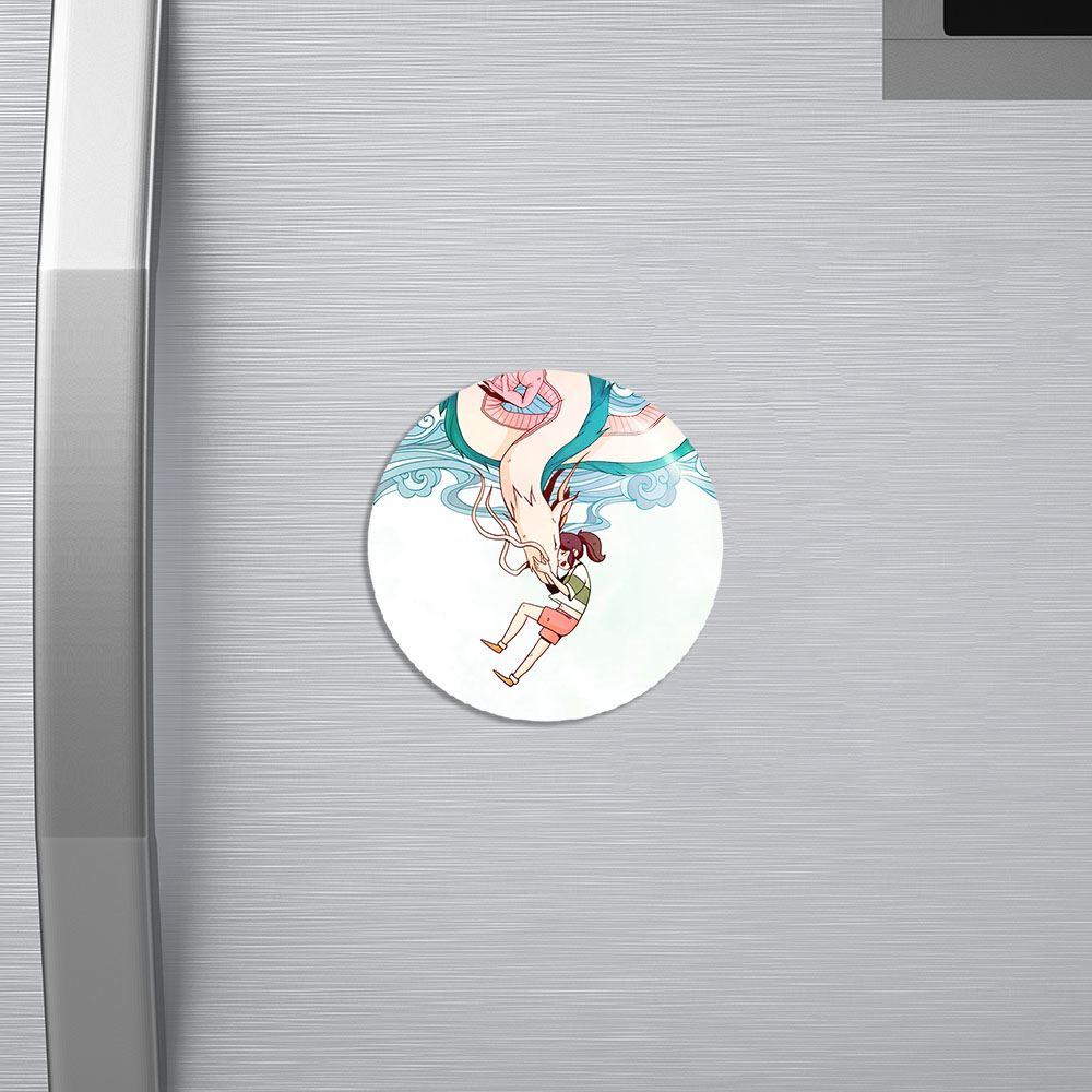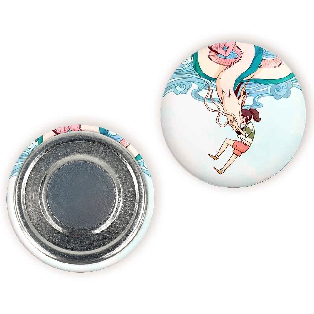 مگنت انیمه شهر اشباح Spirited Away خندالو با روکش سلفون مات مخملی ضدخش و قطعه پشتی فلزی تولید شده است که آهنربای اتمی بکار برده شده در محصول، بصورت مخفی تعبیه شده ودیده نمی شود. ضمن اینکه گیرایی بسیار بالایی داشته و به هیچ عنوان از روی یخچال نمی افتد.