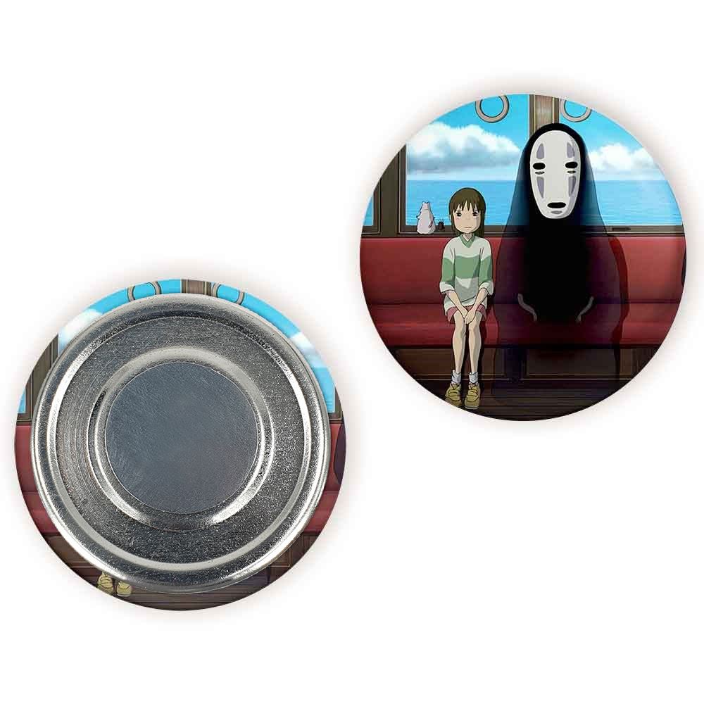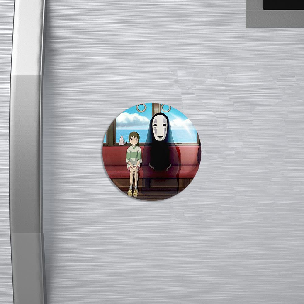 مگنت انیمه شهر اشباح Spirited Away خندالو با روکش سلفون مات مخملی ضدخش و قطعه پشتی فلزی تولید شده است که آهنربای اتمی بکار برده شده در محصول، بصورت مخفی تعبیه شده ودیده نمی شود. ضمن اینکه گیرایی بسیار بالایی داشته و به هیچ عنوان از روی یخچال نمی افتد.