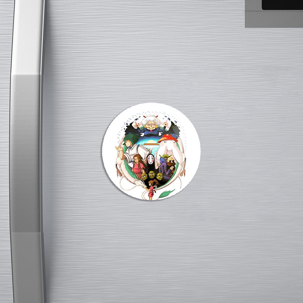 مگنت انیمه شهر اشباح Spirited Away خندالو با روکش سلفون مات مخملی ضدخش و قطعه پشتی فلزی تولید شده است که آهنربای اتمی بکار برده شده در محصول، بصورت مخفی تعبیه شده ودیده نمی شود. ضمن اینکه گیرایی بسیار بالایی داشته و به هیچ عنوان از روی یخچال نمی افتد.