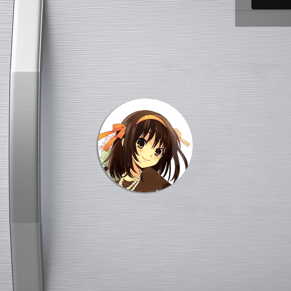 مگنت انیمه ناپدید شدن هاروهی سوزومیا خندالو با روکش سلفون مات مخملی ضدخش و قطعه پشتی فلزی تولید شده است که آهنربای اتمی بکار برده شده در محصول، بصورت مخفی تعبیه شده ودیده نمی شود. ضمن اینکه گیرایی بسیار بالایی داشته و به هیچ عنوان از روی یخچال نمی افتد.