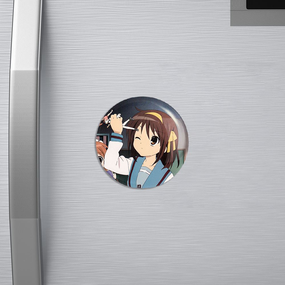 مگنت انیمه ناپدید شدن هاروهی سوزومیا خندالو با روکش سلفون مات مخملی ضدخش و قطعه پشتی فلزی تولید شده است که آهنربای اتمی بکار برده شده در محصول، بصورت مخفی تعبیه شده ودیده نمی شود. ضمن اینکه گیرایی بسیار بالایی داشته و به هیچ عنوان از روی یخچال نمی افتد.