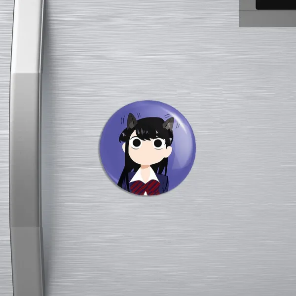 مگنت انیمه کومی سان خندالو با روکش سلفون مات مخملی ضدخش و قطعه پشتی فلزی تولید شده است که آهنربای اتمی بکار برده شده در محصول، بصورت مخفی تعبیه شده ودیده نمی شود. ضمن اینکه گیرایی بسیار بالایی داشته و به هیچ عنوان از روی یخچال نمی افتد.