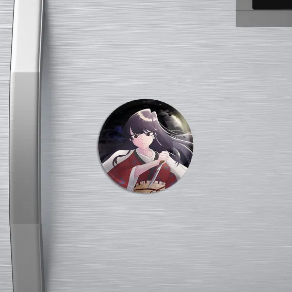 مگنت انیمه کومی سان خندالو با روکش سلفون مات مخملی ضدخش و قطعه پشتی فلزی تولید شده است که آهنربای اتمی بکار برده شده در محصول، بصورت مخفی تعبیه شده ودیده نمی شود. ضمن اینکه گیرایی بسیار بالایی داشته و به هیچ عنوان از روی یخچال نمی افتد.