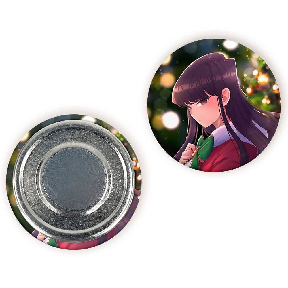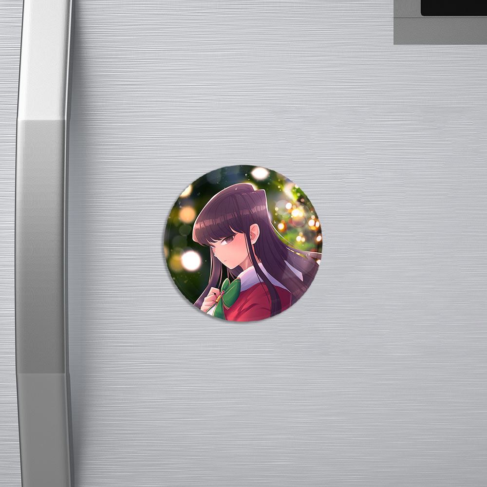 مگنت انیمه کومی سان خندالو با روکش سلفون مات مخملی ضدخش و قطعه پشتی فلزی تولید شده است که آهنربای اتمی بکار برده شده در محصول، بصورت مخفی تعبیه شده ودیده نمی شود. ضمن اینکه گیرایی بسیار بالایی داشته و به هیچ عنوان از روی یخچال نمی افتد.