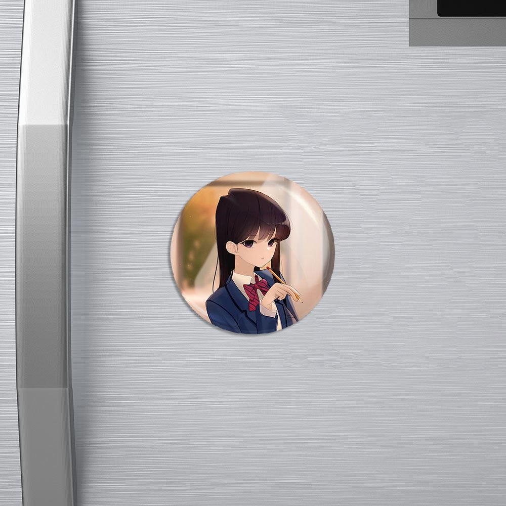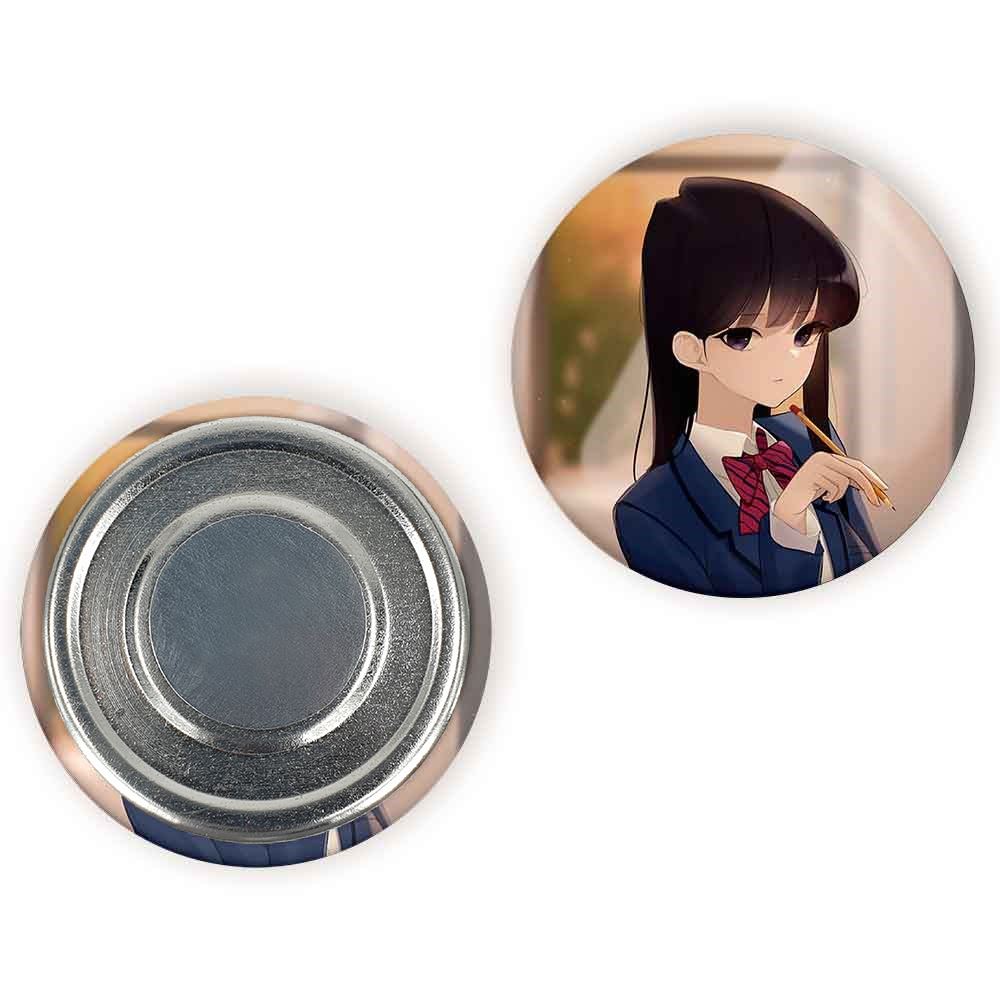 مگنت انیمه کومی سان خندالو با روکش سلفون مات مخملی ضدخش و قطعه پشتی فلزی تولید شده است که آهنربای اتمی بکار برده شده در محصول، بصورت مخفی تعبیه شده ودیده نمی شود. ضمن اینکه گیرایی بسیار بالایی داشته و به هیچ عنوان از روی یخچال نمی افتد.