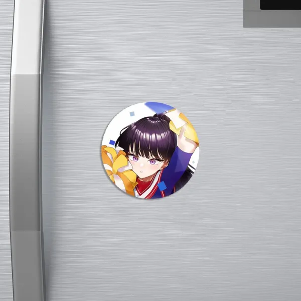 مگنت انیمه کومی سان خندالو با روکش سلفون مات مخملی ضدخش و قطعه پشتی فلزی تولید شده است که آهنربای اتمی بکار برده شده در محصول، بصورت مخفی تعبیه شده ودیده نمی شود. ضمن اینکه گیرایی بسیار بالایی داشته و به هیچ عنوان از روی یخچال نمی افتد.