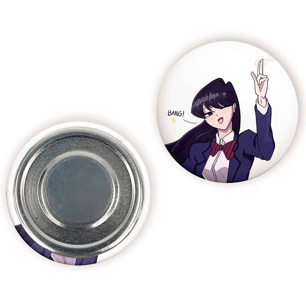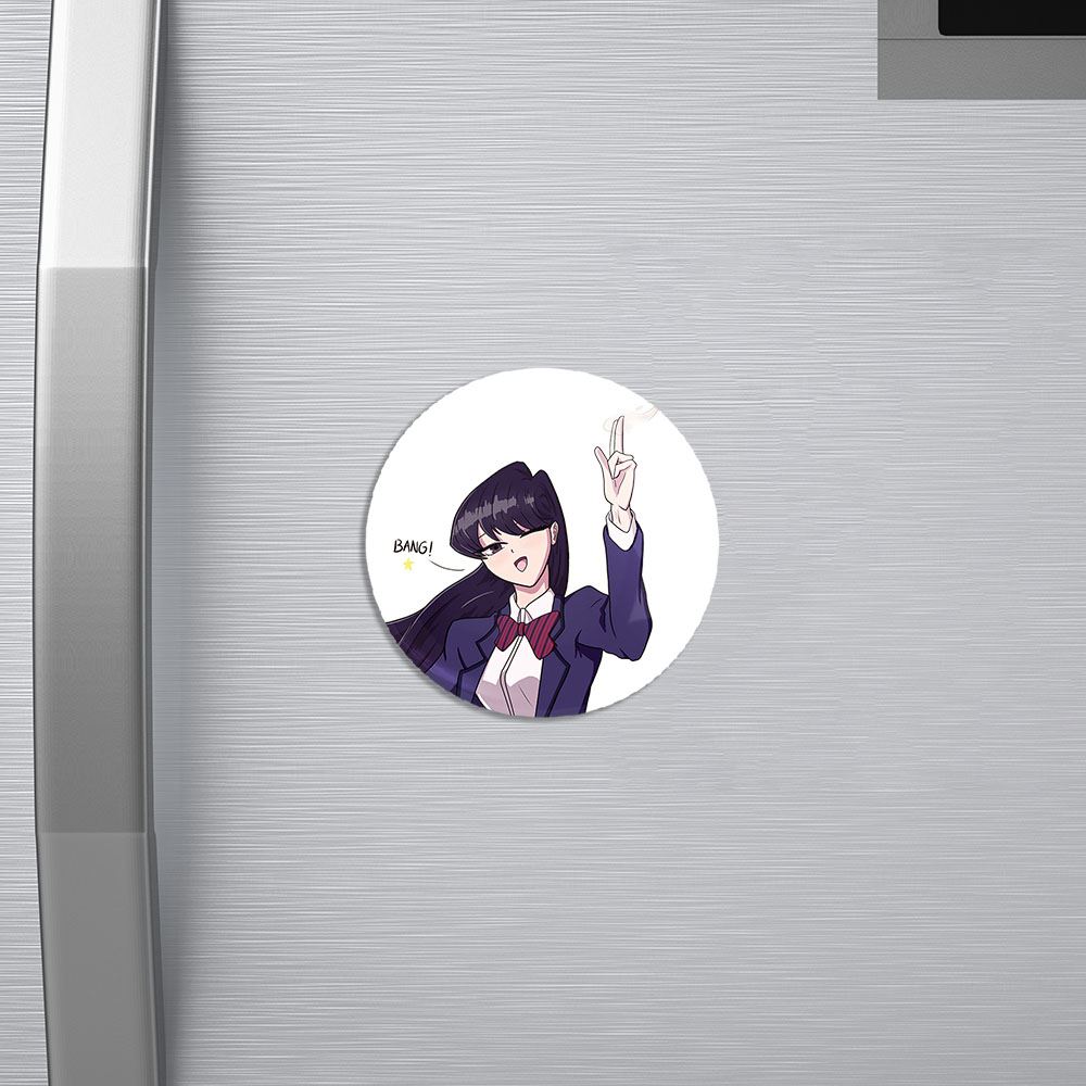 مگنت انیمه کومی سان خندالو با روکش سلفون مات مخملی ضدخش و قطعه پشتی فلزی تولید شده است که آهنربای اتمی بکار برده شده در محصول، بصورت مخفی تعبیه شده ودیده نمی شود. ضمن اینکه گیرایی بسیار بالایی داشته و به هیچ عنوان از روی یخچال نمی افتد.