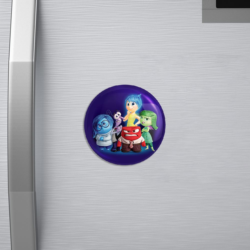 مگنت انیمیشن اینساید اوت Inside Out خندالو با روکش سلفون مات مخملی ضدخش و قطعه پشتی فلزی تولید شده است که آهنربای اتمی بکار برده شده در محصول، بصورت مخفی تعبیه شده ودیده نمی شود. ضمن اینکه گیرایی بسیار بالایی داشته و به هیچ عنوان از روی یخچال نمی افتد.