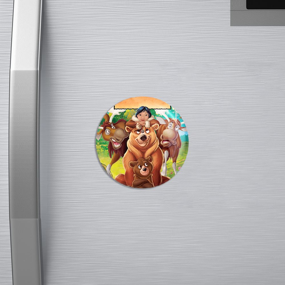 مگنت انیمیشن خرس برادر Brother Bear خندالو با روکش سلفون مات مخملی ضدخش و قطعه پشتی فلزی تولید شده است که آهنربای اتمی بکار برده شده در محصول، بصورت مخفی تعبیه شده ودیده نمی شود. ضمن اینکه گیرایی بسیار بالایی داشته و به هیچ عنوان از روی یخچال نمی افتد.