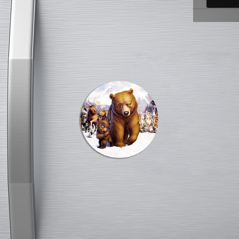 مگنت انیمیشن خرس برادر Brother Bear خندالو با روکش سلفون مات مخملی ضدخش و قطعه پشتی فلزی تولید شده است که آهنربای اتمی بکار برده شده در محصول، بصورت مخفی تعبیه شده ودیده نمی شود. ضمن اینکه گیرایی بسیار بالایی داشته و به هیچ عنوان از روی یخچال نمی افتد.