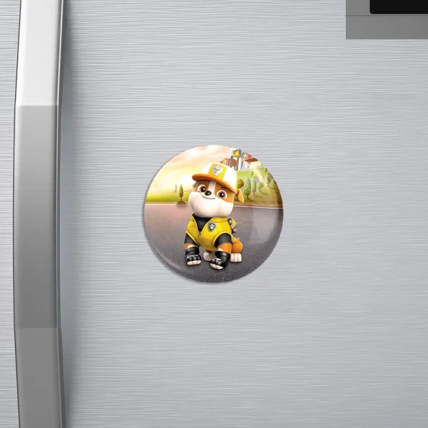 مگنت انیمیشن سگ های نگهبان خندالو با روکش سلفون مات مخملی ضدخش و قطعه پشتی فلزی تولید شده است که آهنربای اتمی بکار برده شده در محصول، بصورت مخفی تعبیه شده ودیده نمی شود. ضمن اینکه گیرایی بسیار بالایی داشته و به هیچ عنوان از روی یخچال نمی افتد.