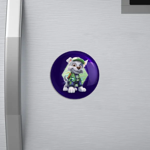 مگنت انیمیشن سگ های نگهبان خندالو با روکش سلفون مات مخملی ضدخش و قطعه پشتی فلزی تولید شده است که آهنربای اتمی بکار برده شده در محصول، بصورت مخفی تعبیه شده ودیده نمی شود. ضمن اینکه گیرایی بسیار بالایی داشته و به هیچ عنوان از روی یخچال نمی افتد.