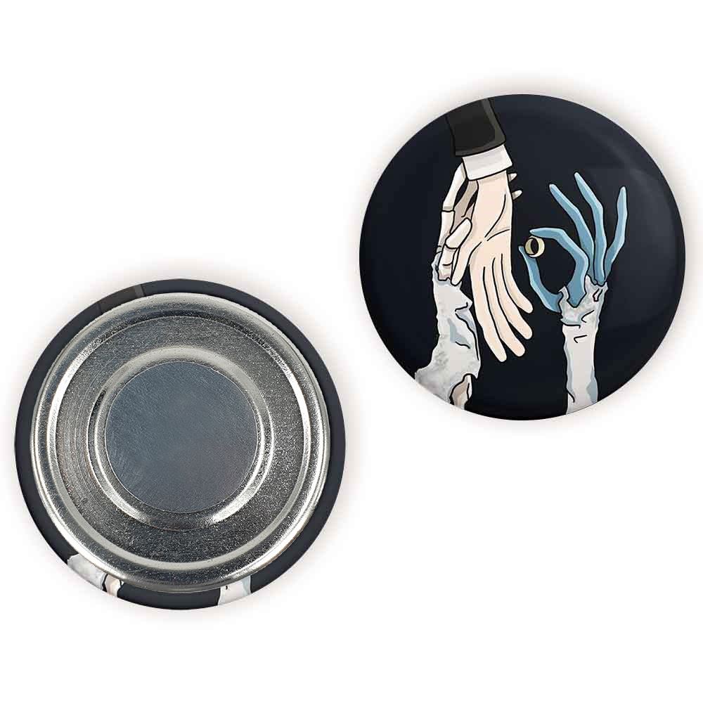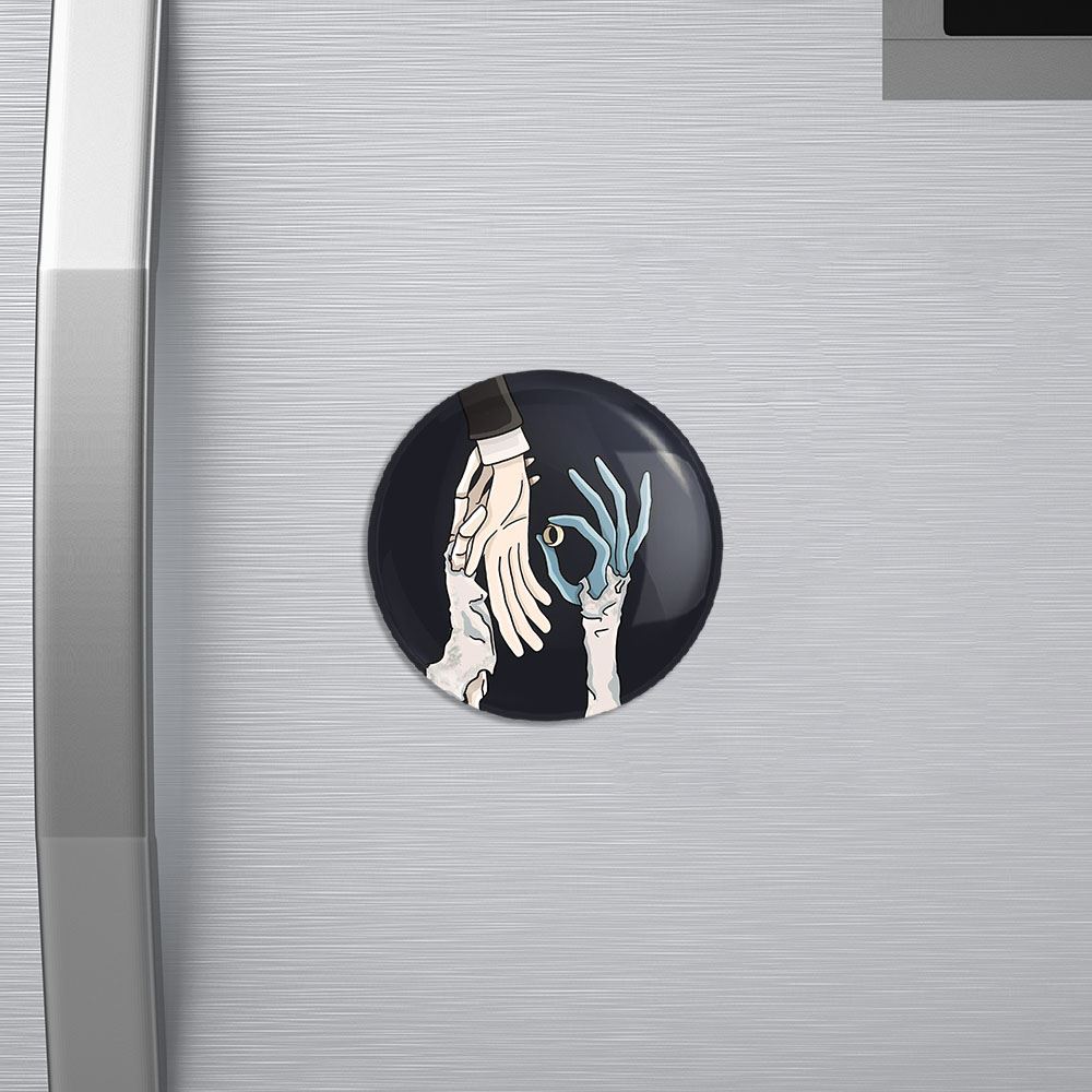 مگنت انیمیشن عروس مردگان خندالو با روکش سلفون مات مخملی ضدخش و قطعه پشتی فلزی تولید شده است که آهنربای اتمی بکار برده شده در محصول، بصورت مخفی تعبیه شده ودیده نمی شود. ضمن اینکه گیرایی بسیار بالایی داشته و به هیچ عنوان از روی یخچال نمی افتد.