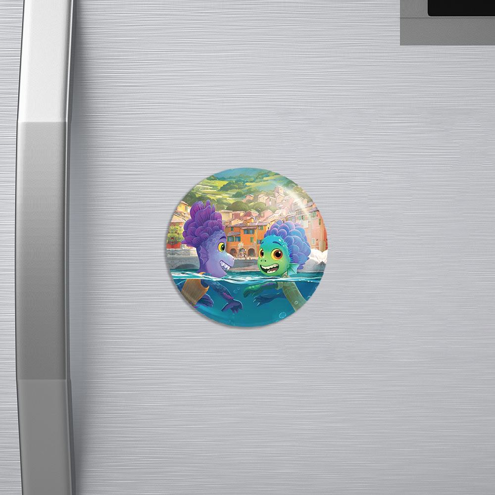 مگنت انیمیشن لوکا Luca خندالو با روکش سلفون مات مخملی ضدخش و قطعه پشتی فلزی تولید شده است که آهنربای اتمی بکار برده شده در محصول، بصورت مخفی تعبیه شده ودیده نمی شود. ضمن اینکه گیرایی بسیار بالایی داشته و به هیچ عنوان از روی یخچال نمی افتد.