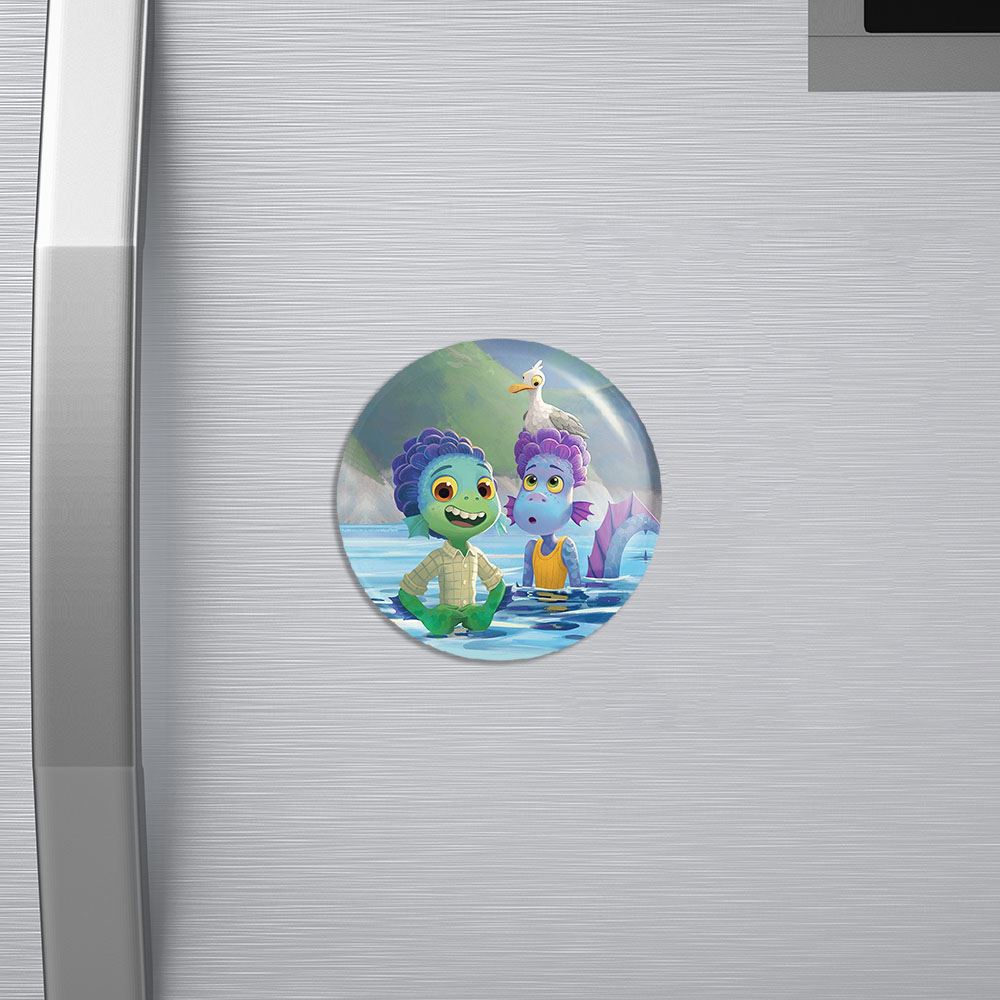 مگنت انیمیشن لوکا Luca خندالو با روکش سلفون مات مخملی ضدخش و قطعه پشتی فلزی تولید شده است که آهنربای اتمی بکار برده شده در محصول، بصورت مخفی تعبیه شده ودیده نمی شود. ضمن اینکه گیرایی بسیار بالایی داشته و به هیچ عنوان از روی یخچال نمی افتد.