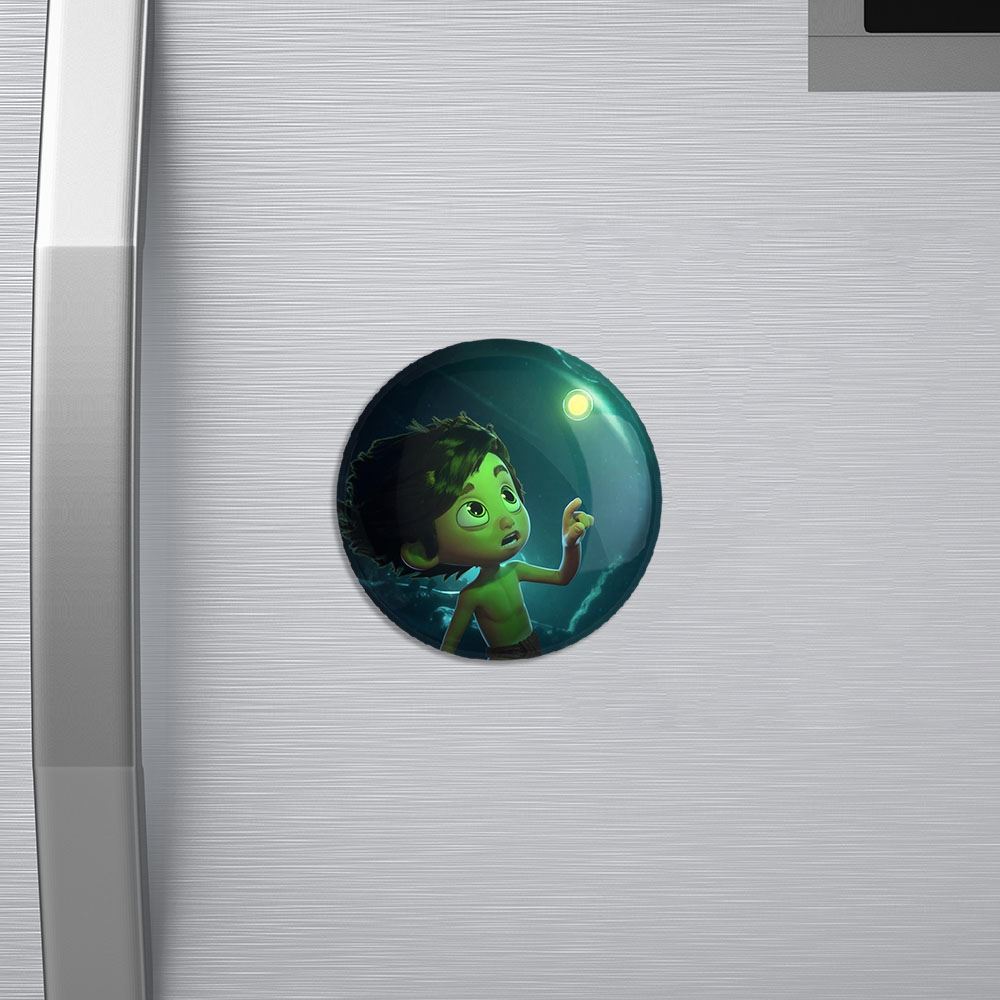 مگنت انیمیشن پسر دلفینی خندالو با روکش سلفون مات مخملی ضدخش و قطعه پشتی فلزی تولید شده است که آهنربای اتمی بکار برده شده در محصول، بصورت مخفی تعبیه شده ودیده نمی شود. ضمن اینکه گیرایی بسیار بالایی داشته و به هیچ عنوان از روی یخچال نمی افتد.