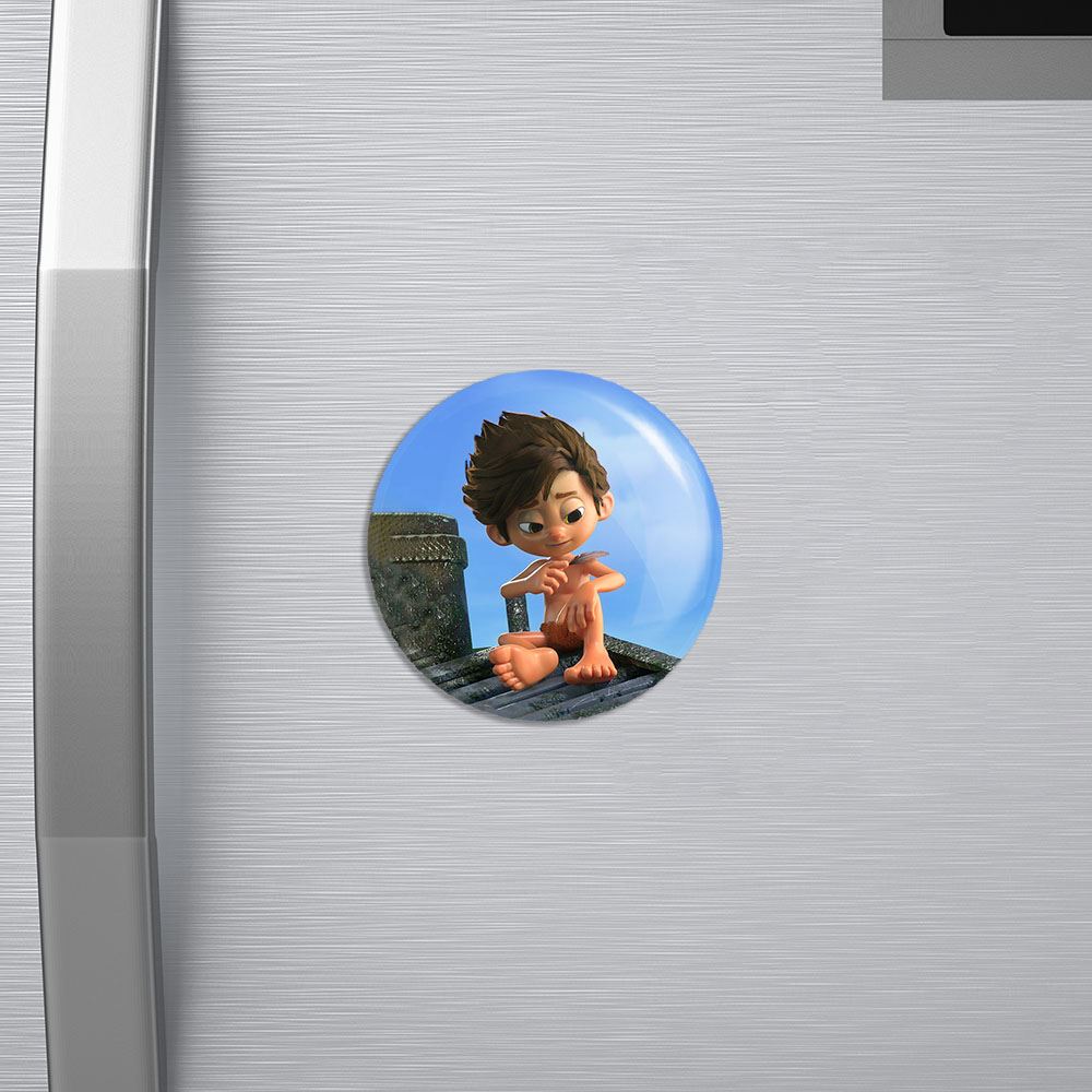مگنت انیمیشن پسر دلفینی خندالو با روکش سلفون مات مخملی ضدخش و قطعه پشتی فلزی تولید شده است که آهنربای اتمی بکار برده شده در محصول، بصورت مخفی تعبیه شده ودیده نمی شود. ضمن اینکه گیرایی بسیار بالایی داشته و به هیچ عنوان از روی یخچال نمی افتد.