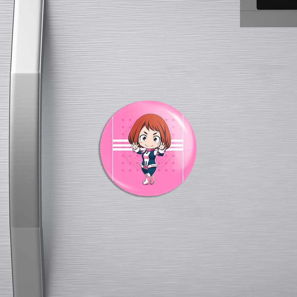 مگنت اوراراکا انیمه آکادمی قهرمان من خندالو با روکش سلفون مات مخملی ضدخش و قطعه پشتی فلزی تولید شده است که آهنربای اتمی بکار برده شده در محصول، بصورت مخفی تعبیه شده ودیده نمی شود. ضمن اینکه گیرایی بسیار بالایی داشته و به هیچ عنوان از روی یخچال نمی افتد.