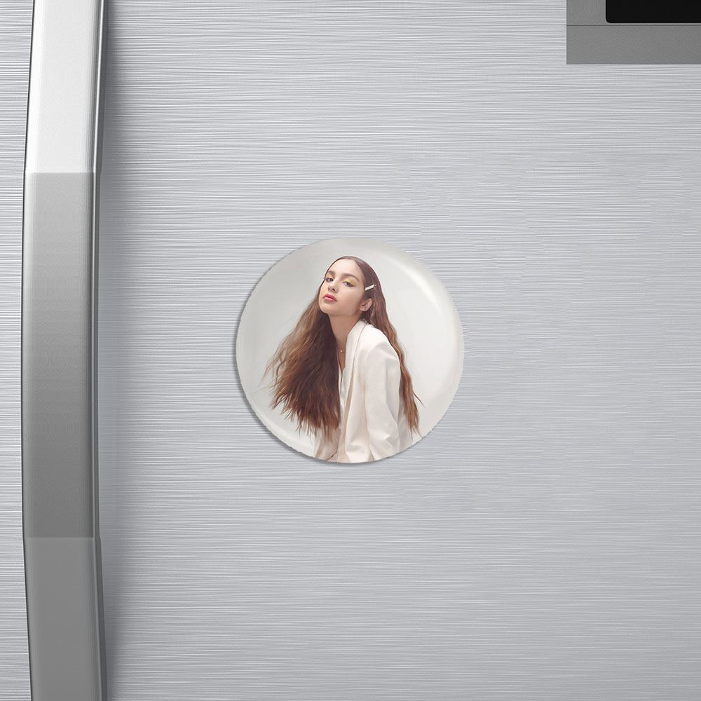 مگنت اولیویا رودریگو Olivia Rodrigo خندالو با روکش سلفون مات مخملی ضدخش و قطعه پشتی فلزی تولید شده است که آهنربای اتمی بکار برده شده در محصول، بصورت مخفی تعبیه شده ودیده نمی شود. ضمن اینکه گیرایی بسیار بالایی داشته و به هیچ عنوان از روی یخچال نمی افتد.