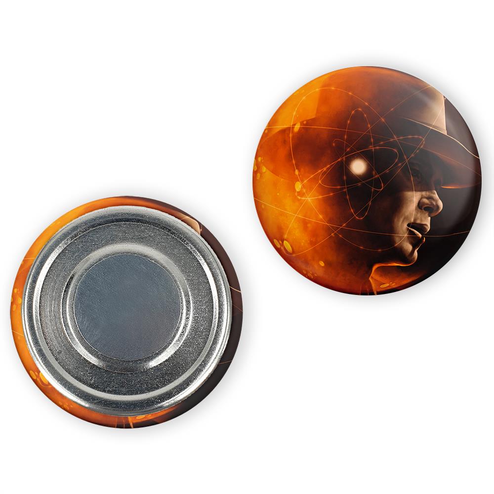 مگنت اوپنهایمر Oppenheimer خندالو با روکش سلفون مات مخملی ضدخش و قطعه پشتی فلزی تولید شده است که آهنربای اتمی بکار برده شده در محصول، بصورت مخفی تعبیه شده ودیده نمی شود. ضمن اینکه گیرایی بسیار بالایی داشته و به هیچ عنوان از روی یخچال نمی افتد.