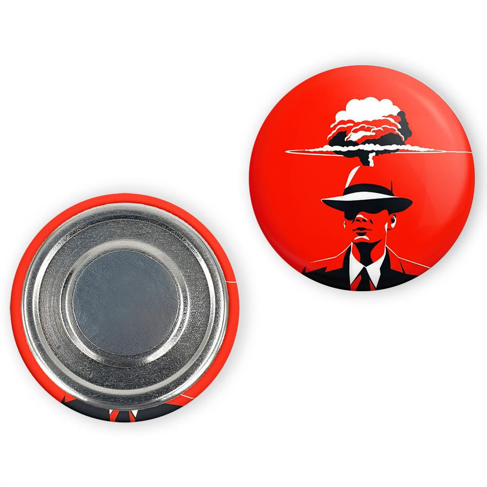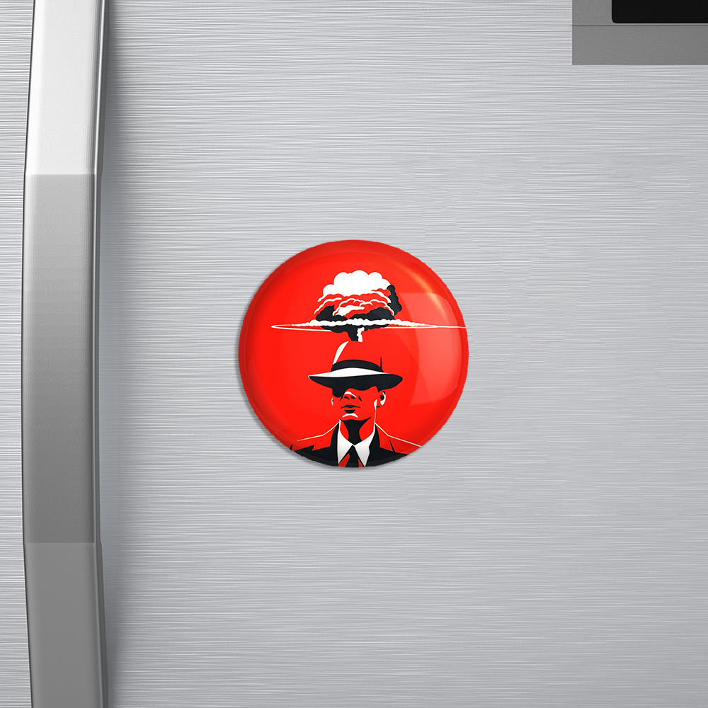 مگنت اوپنهایمر Oppenheimer خندالو با روکش سلفون مات مخملی ضدخش و قطعه پشتی فلزی تولید شده است که آهنربای اتمی بکار برده شده در محصول، بصورت مخفی تعبیه شده ودیده نمی شود. ضمن اینکه گیرایی بسیار بالایی داشته و به هیچ عنوان از روی یخچال نمی افتد.