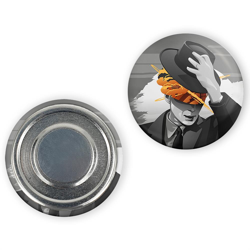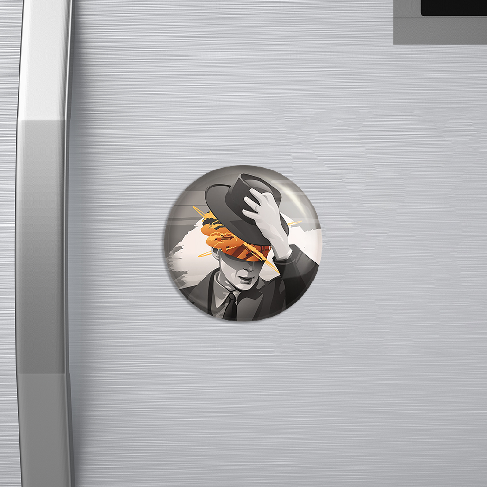مگنت اوپنهایمر Oppenheimer خندالو با روکش سلفون مات مخملی ضدخش و قطعه پشتی فلزی تولید شده است که آهنربای اتمی بکار برده شده در محصول، بصورت مخفی تعبیه شده ودیده نمی شود. ضمن اینکه گیرایی بسیار بالایی داشته و به هیچ عنوان از روی یخچال نمی افتد.