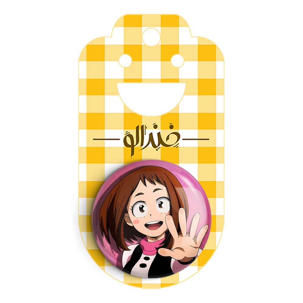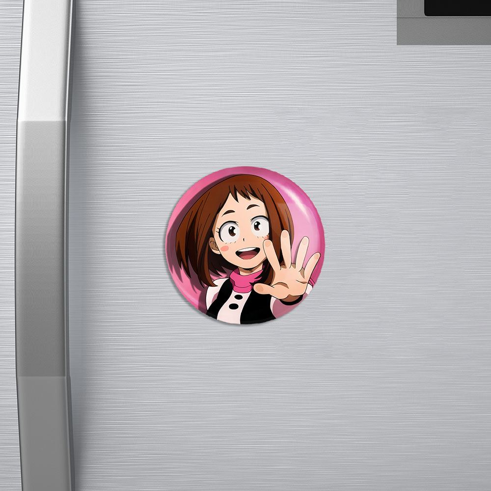 مگنت اوچاکو اوراراکا انیمه آکادمی قهرمان من خندالو با روکش سلفون مات مخملی ضدخش و قطعه پشتی فلزی تولید شده است که آهنربای اتمی بکار برده شده در محصول، بصورت مخفی تعبیه شده ودیده نمی شود. ضمن اینکه گیرایی بسیار بالایی داشته و به هیچ عنوان از روی یخچال نمی افتد.