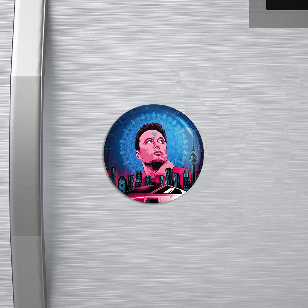 مگنت ایلان ماسک Elon Musk خندالو با روکش سلفون مات مخملی ضدخش و قطعه پشتی فلزی تولید شده است که آهنربای اتمی بکار برده شده در محصول، بصورت مخفی تعبیه شده ودیده نمی شود. ضمن اینکه گیرایی بسیار بالایی داشته و به هیچ عنوان از روی یخچال نمی افتد.