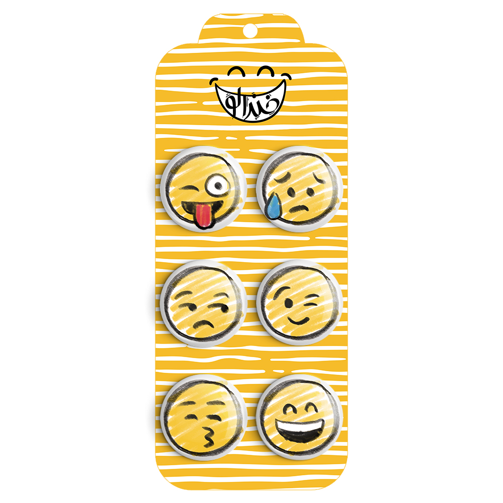 پک 6 عددی مگنت یخچال خندالو طرح ایموجی (Emoji) با روکش سلفون مات حرارتی مخملی ضدخش و قطعه پشتی فلزی تولید شده است که آهنربای اتمی بکار برده شده در محصول، بصورت مخفی تعبیه شده ودیده نمی شود. ضمن اینکه گیرایی بسیار بالایی داشته و به هیچ عنوان از روی یخچال نمی افتد. نکته مهم این است که به دلیل مخفی بودن آهنربا، هیچگونه خط و خش و زدگی بر روی یخچال ایجاد نخواهد شد.