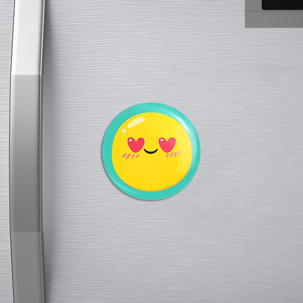 مگنت ایموجی Emoji خندالو با روکش سلفون مات مخملی ضدخش و قطعه پشتی فلزی تولید شده است که آهنربای اتمی بکار برده شده در محصول، بصورت مخفی تعبیه شده ودیده نمی شود. ضمن اینکه گیرایی بسیار بالایی داشته و به هیچ عنوان از روی یخچال نمی افتد.