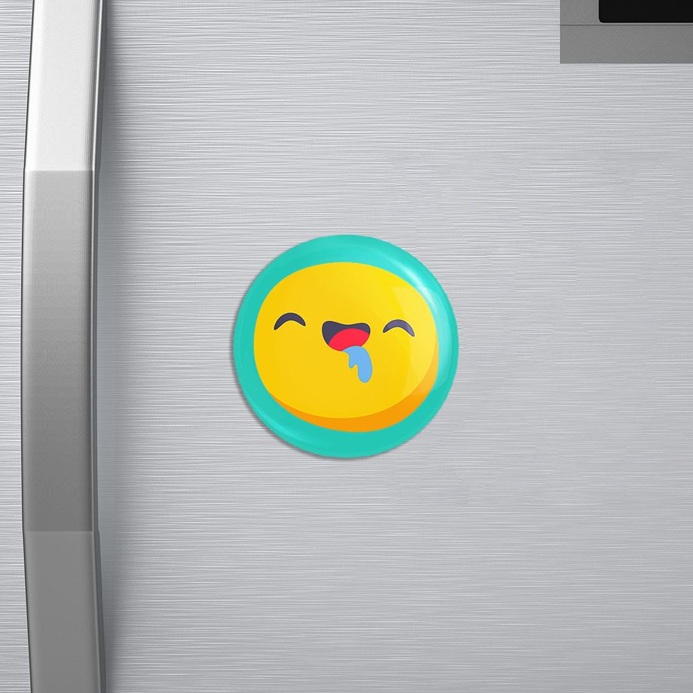 مگنت ایموجی Emoji خندالو با روکش سلفون مات مخملی ضدخش و قطعه پشتی فلزی تولید شده است که آهنربای اتمی بکار برده شده در محصول، بصورت مخفی تعبیه شده ودیده نمی شود. ضمن اینکه گیرایی بسیار بالایی داشته و به هیچ عنوان از روی یخچال نمی افتد.