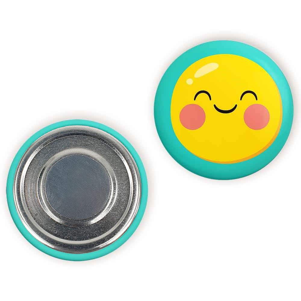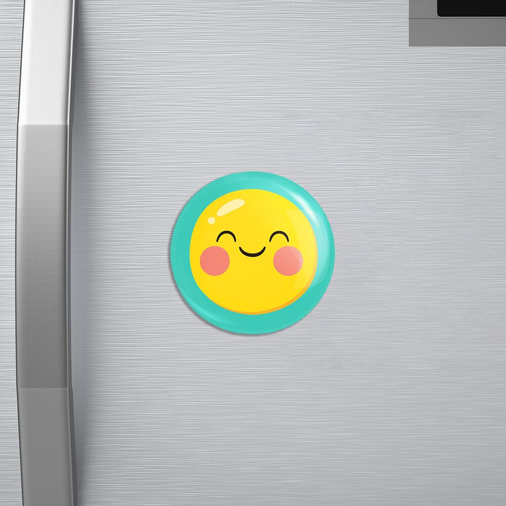 مگنت ایموجی Emoji خندالو با روکش سلفون مات مخملی ضدخش و قطعه پشتی فلزی تولید شده است که آهنربای اتمی بکار برده شده در محصول، بصورت مخفی تعبیه شده ودیده نمی شود. ضمن اینکه گیرایی بسیار بالایی داشته و به هیچ عنوان از روی یخچال نمی افتد.