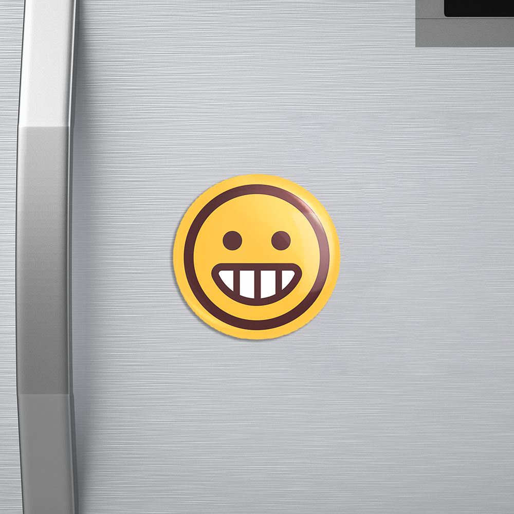 مگنت ایموجی Emoji خندالو با روکش سلفون مات مخملی ضدخش و قطعه پشتی فلزی تولید شده است که آهنربای اتمی بکار برده شده در محصول، بصورت مخفی تعبیه شده ودیده نمی شود. ضمن اینکه گیرایی بسیار بالایی داشته و به هیچ عنوان از روی یخچال نمی افتد.