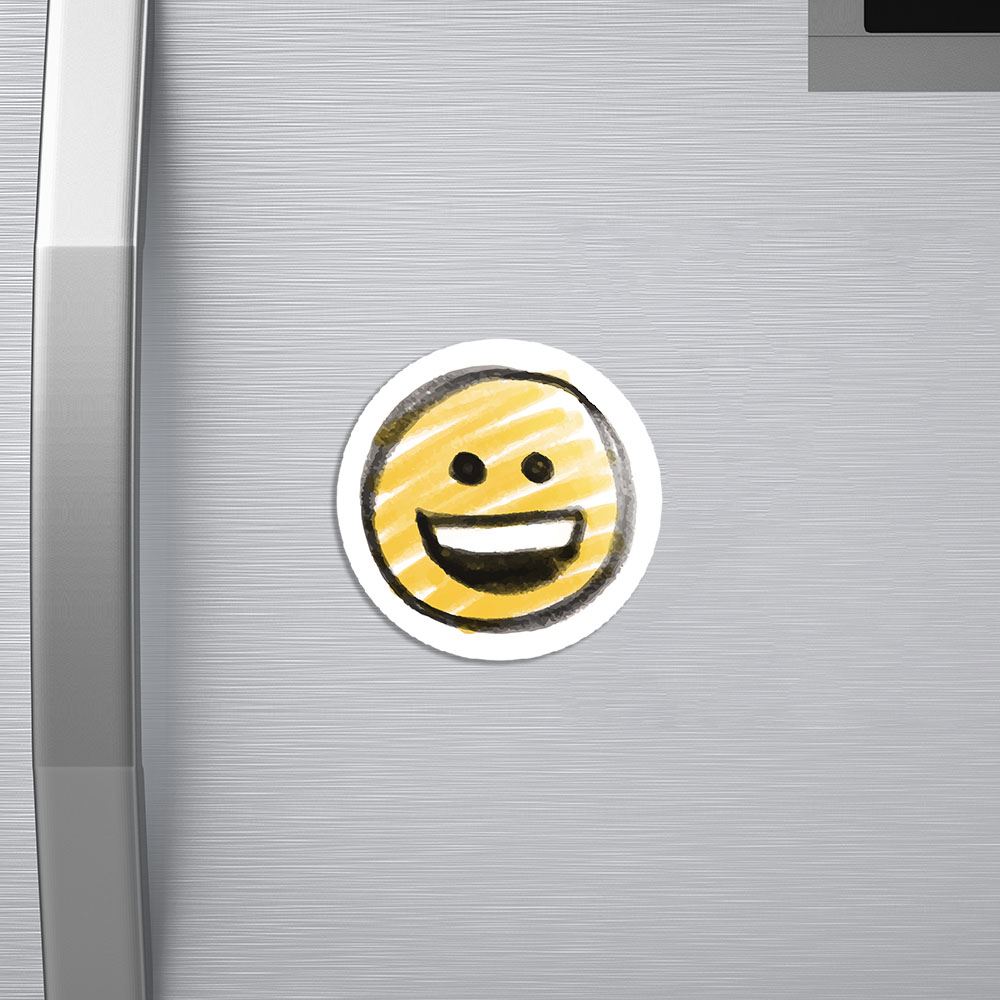 مگنت ایموجی Emoji خندالو با روکش سلفون مات مخملی ضدخش و قطعه پشتی فلزی تولید شده است که آهنربای اتمی بکار برده شده در محصول، بصورت مخفی تعبیه شده ودیده نمی شود. ضمن اینکه گیرایی بسیار بالایی داشته و به هیچ عنوان از روی یخچال نمی افتد.
