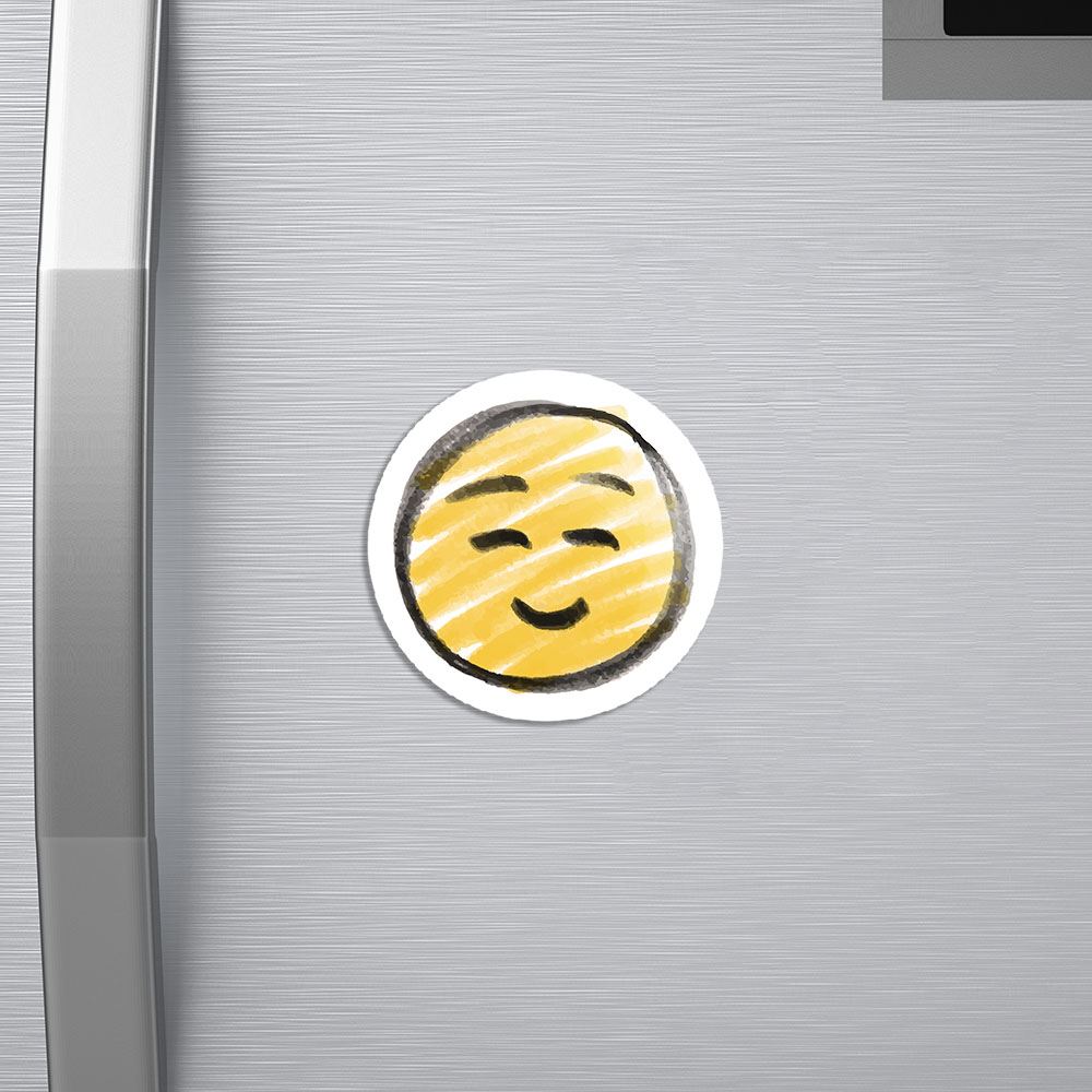 مگنت ایموجی Emoji خندالو با روکش سلفون مات مخملی ضدخش و قطعه پشتی فلزی تولید شده است که آهنربای اتمی بکار برده شده در محصول، بصورت مخفی تعبیه شده ودیده نمی شود. ضمن اینکه گیرایی بسیار بالایی داشته و به هیچ عنوان از روی یخچال نمی افتد.