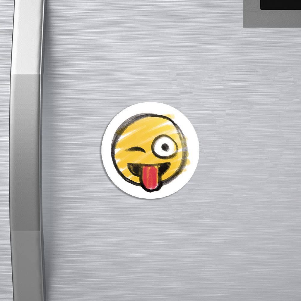 مگنت ایموجی Emoji خندالو با روکش سلفون مات مخملی ضدخش و قطعه پشتی فلزی تولید شده است که آهنربای اتمی بکار برده شده در محصول، بصورت مخفی تعبیه شده ودیده نمی شود. ضمن اینکه گیرایی بسیار بالایی داشته و به هیچ عنوان از روی یخچال نمی افتد.