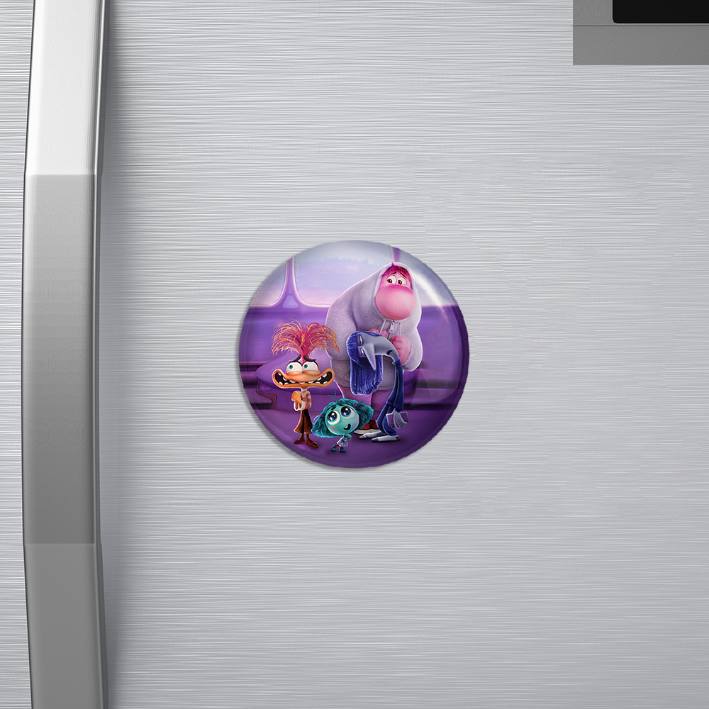 مگنت اینساید اوت (Inside Out) خندالو با روکش سلفون مات مخملی ضدخش و قطعه پشتی فلزی تولید شده است که آهنربای اتمی بکار برده شده در محصول، بصورت مخفی تعبیه شده ودیده نمی شود. ضمن اینکه گیرایی بسیار بالایی داشته و به هیچ عنوان از روی یخچال نمی افتد.