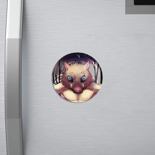مگنت اینوسکه انیمه شیطان کش خندالو با روکش سلفون مات مخملی ضدخش و قطعه پشتی فلزی تولید شده است که آهنربای اتمی بکار برده شده در محصول، بصورت مخفی تعبیه شده ودیده نمی شود. ضمن اینکه گیرایی بسیار بالایی داشته و به هیچ عنوان از روی یخچال نمی افتد.