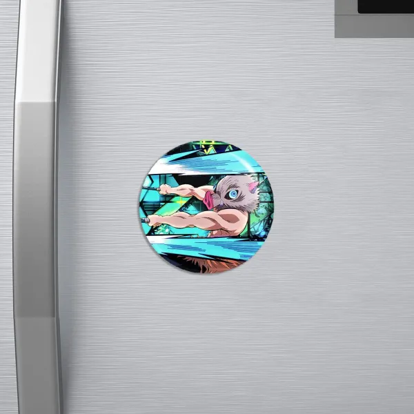 مگنت اینوسکه انیمه شیطان کش خندالو با روکش سلفون مات مخملی ضدخش و قطعه پشتی فلزی تولید شده است که آهنربای اتمی بکار برده شده در محصول، بصورت مخفی تعبیه شده ودیده نمی شود. ضمن اینکه گیرایی بسیار بالایی داشته و به هیچ عنوان از روی یخچال نمی افتد.