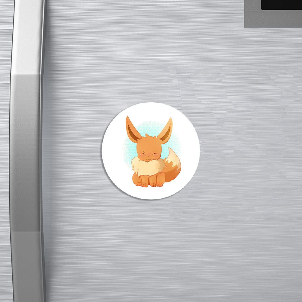 مگنت ایو انیمه پوکمون خندالو با روکش سلفون مات مخملی ضدخش و قطعه پشتی فلزی تولید شده است که آهنربای اتمی بکار برده شده در محصول، بصورت مخفی تعبیه شده ودیده نمی شود. ضمن اینکه گیرایی بسیار بالایی داشته و به هیچ عنوان از روی یخچال نمی افتد.