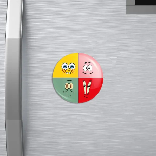 مگنت باب اسفنجی و پاتریک خندالو با روکش سلفون مات مخملی ضدخش و قطعه پشتی فلزی تولید شده است که آهنربای اتمی بکار برده شده در محصول، بصورت مخفی تعبیه شده ودیده نمی شود. ضمن اینکه گیرایی بسیار بالایی داشته و به هیچ عنوان از روی یخچال نمی افتد.