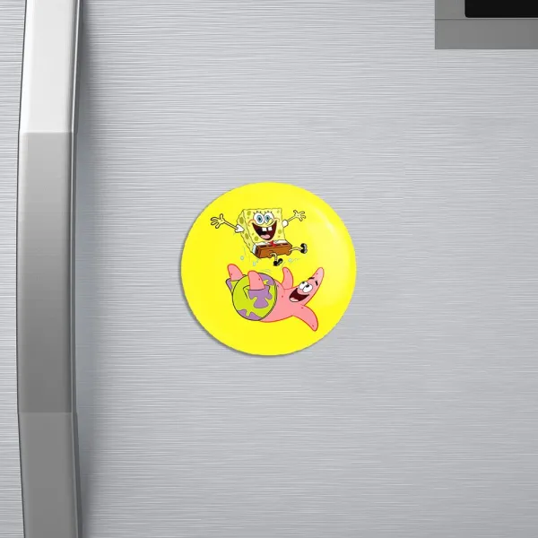 مگنت باب اسفنجی خندالو با روکش سلفون مات مخملی ضدخش و قطعه پشتی فلزی تولید شده است که آهنربای اتمی بکار برده شده در محصول، بصورت مخفی تعبیه شده ودیده نمی شود. ضمن اینکه گیرایی بسیار بالایی داشته و به هیچ عنوان از روی یخچال نمی افتد.