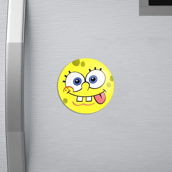 مگنت باب اسفنجی خندالو با روکش سلفون مات مخملی ضدخش و قطعه پشتی فلزی تولید شده است که آهنربای اتمی بکار برده شده در محصول، بصورت مخفی تعبیه شده ودیده نمی شود. ضمن اینکه گیرایی بسیار بالایی داشته و به هیچ عنوان از روی یخچال نمی افتد.