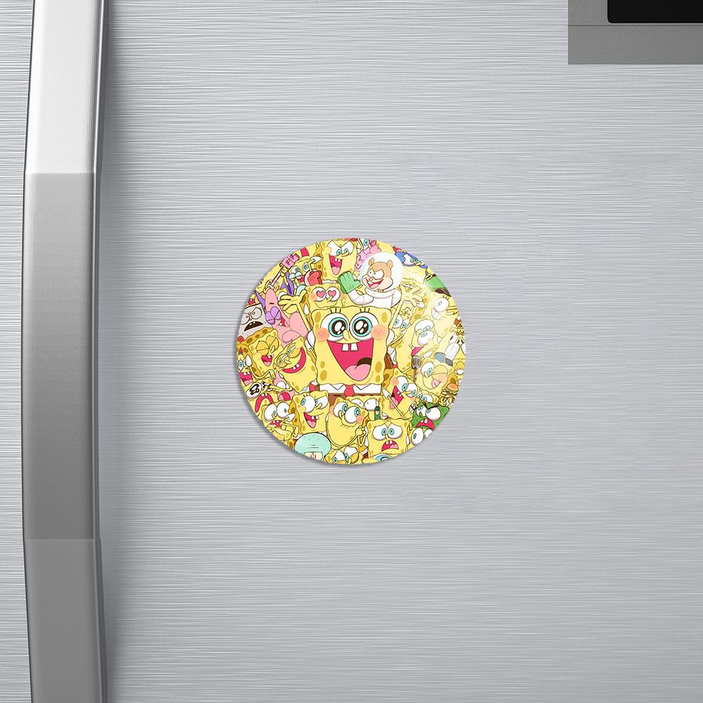 مگنت باب اسفنجی خندالو با روکش سلفون مات مخملی ضدخش و قطعه پشتی فلزی تولید شده است که آهنربای اتمی بکار برده شده در محصول، بصورت مخفی تعبیه شده ودیده نمی شود. ضمن اینکه گیرایی بسیار بالایی داشته و به هیچ عنوان از روی یخچال نمی افتد.