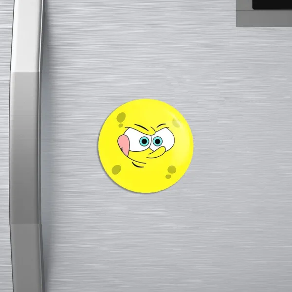 مگنت باب اسفنجی خندالو با روکش سلفون مات مخملی ضدخش و قطعه پشتی فلزی تولید شده است که آهنربای اتمی بکار برده شده در محصول، بصورت مخفی تعبیه شده ودیده نمی شود. ضمن اینکه گیرایی بسیار بالایی داشته و به هیچ عنوان از روی یخچال نمی افتد.