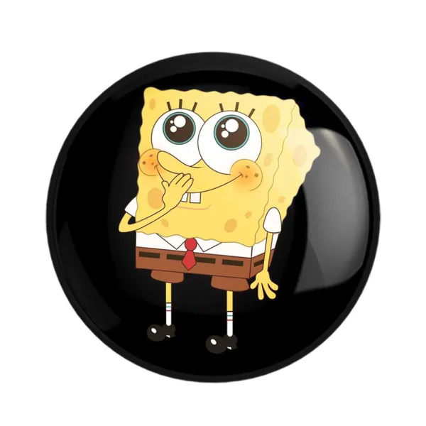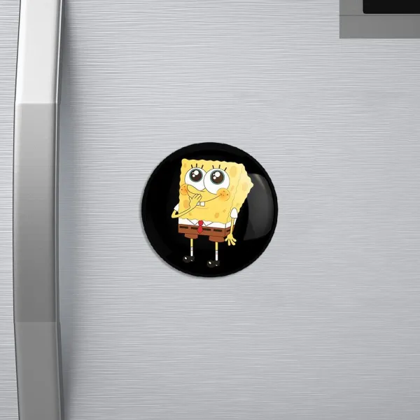 مگنت باب اسفنجی خندالو با روکش سلفون مات مخملی ضدخش و قطعه پشتی فلزی تولید شده است که آهنربای اتمی بکار برده شده در محصول، بصورت مخفی تعبیه شده ودیده نمی شود. ضمن اینکه گیرایی بسیار بالایی داشته و به هیچ عنوان از روی یخچال نمی افتد.