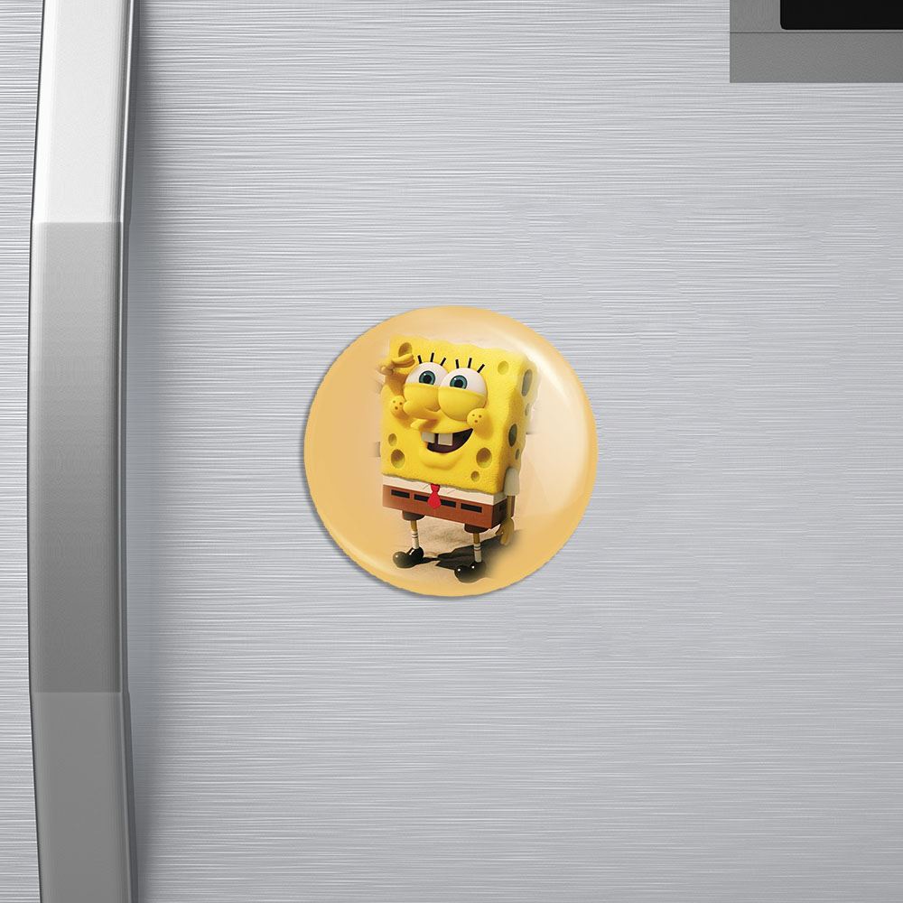 مگنت باب اسفنجی خندالو با روکش سلفون مات مخملی ضدخش و قطعه پشتی فلزی تولید شده است که آهنربای اتمی بکار برده شده در محصول، بصورت مخفی تعبیه شده ودیده نمی شود. ضمن اینکه گیرایی بسیار بالایی داشته و به هیچ عنوان از روی یخچال نمی افتد.