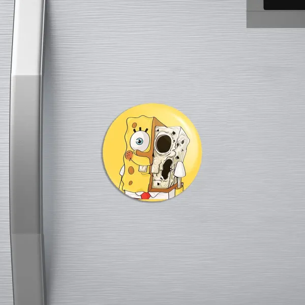 مگنت باب اسفنجی خندالو با روکش سلفون مات مخملی ضدخش و قطعه پشتی فلزی تولید شده است که آهنربای اتمی بکار برده شده در محصول، بصورت مخفی تعبیه شده ودیده نمی شود. ضمن اینکه گیرایی بسیار بالایی داشته و به هیچ عنوان از روی یخچال نمی افتد.