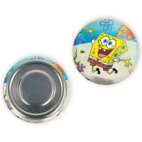 مگنت باب اسفنجی خندالو با روکش سلفون مات مخملی ضدخش و قطعه پشتی فلزی تولید شده است که آهنربای اتمی بکار برده شده در محصول، بصورت مخفی تعبیه شده ودیده نمی شود. ضمن اینکه گیرایی بسیار بالایی داشته و به هیچ عنوان از روی یخچال نمی افتد.